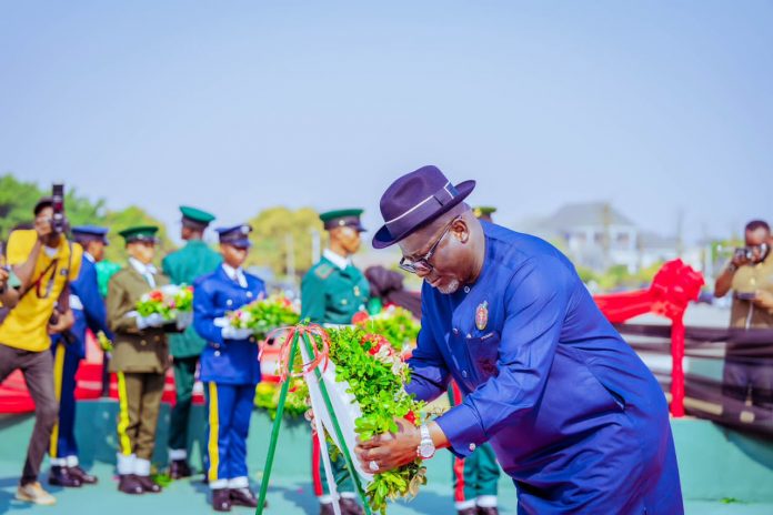 DELTA State Governor, Chief Sheriff Oborevwori, yesterday, led top military officers and others to lay wreaths at the statue of the Unknown Soldier in Asaba, the state capital, in commemoration of this year’s Armed Forces Remembrance Day.