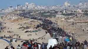 A huge column of people filed on foot north along the coastal road overlooking sandy beaches towards Gaza City, the enclave’s biggest urban area, which had been under attack just days ago in one of Israel’s biggest offensives of the war.