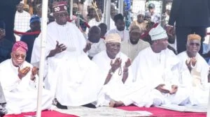 In celebration, President Bola Tinubu joined the Muslim faithful to observe Eid-el-Fitr prayers at the Dodan Barracks praying ground in Ikoyi, Lagos.