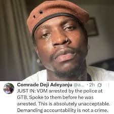 Adeyanju said: “VDM arrested by the Police at GTB. Spoke to them before he was arrested. This is absolutely unacceptable. Demanding accountability is not a crime.