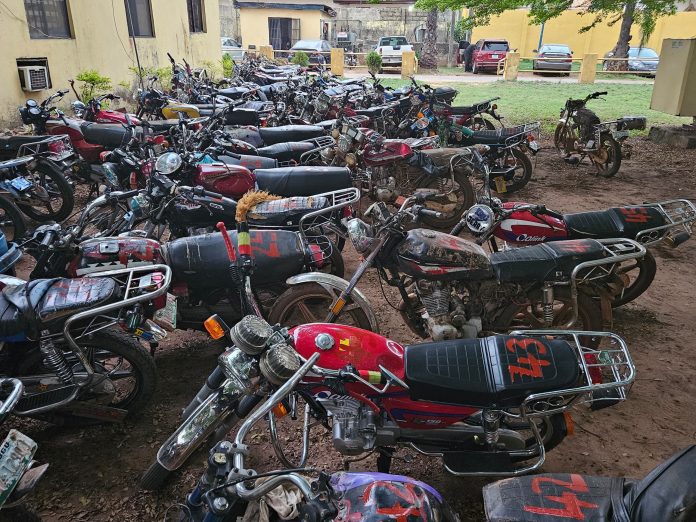 Edafe disclosed that eight male suspects were arrested and 53 motorcycles impounded.