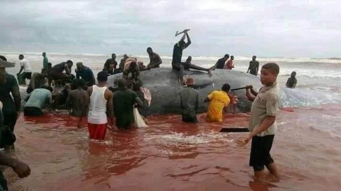 Residents Butcher Stranded Whale In Bayelsa